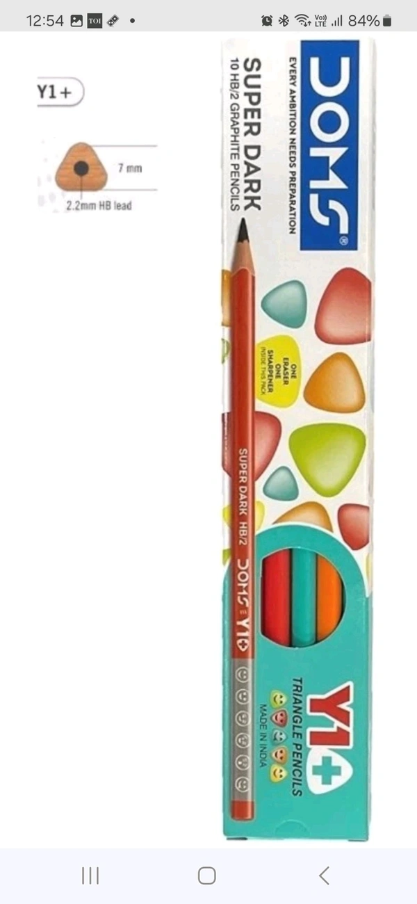 Doms Triangle Pencil Pack Containing 10 Pencils, Sharpner And Eraser